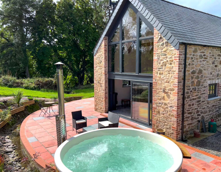 Y Felin has exclusive use of a log fired hot tub, located on a raised platform above the patio terrace. The hot tub can seat six and has LED lights and jets.